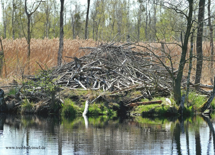 Nein, natürlich nicht. Der Biber nimmt das Geäst des Baumes systematisch auseinander. Bis zu einem Durchmesser von 15 Zentimetern längt er die Zweige und Äste ab und transportiert sie zum Bau, vom Stamm schält er die Rinde ab. Blätter und Rinde dienen ihm als Nahrung, von der er im Herbst Vorräte anlegt. Der Rest ist Baumaterial für seine Biberburg. Eine solche sieht man an der dritten Brücke über den Osttorfkanal. Hier geht es dann ein Stück das Fließ entlang, vorbei an den untrüglichen Zeichen der Anwesenheit des Nagetiers.
