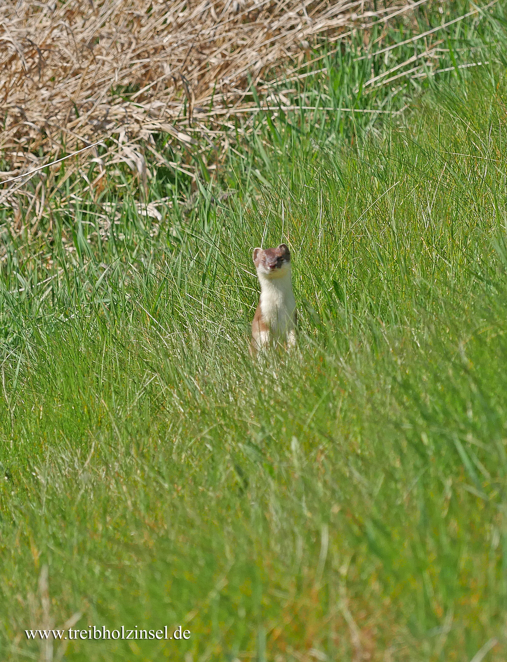 Im Schilf raschelt es. Ich halte inne und beobachte die Halme, die sich bewegen, aber noch kann ich nichts sehen. Es raschelt wieder und plötzlich lugt ein winziges Tier mit Knöpfchenaugen aus dem Schilf. Es schnuppert und blinzelt. Im Schnäuzchen trägt es eine winzige Maus und galoppiert damit über den Weg in die Feuchtwiese auf der anderen Seite. Während des Rückwegs begegnen mir noch mehrere dieser niedlichen Tierchen, aber es sind Raubtiere, die kleinsten zwar, die unser Kontinent aufzuweisen hat, aber gefährliche Räuber. Mauswiesel sind nur zehn Zentimeter groß, dazu ein Schwanz, der fast genau so lang ist und mit einem Puschelchen endet, das an einen Löwenschwanz erinnert. Sie leben versteckt in der Wiese und jagen im endlosen Dschungel des Schilfufers.