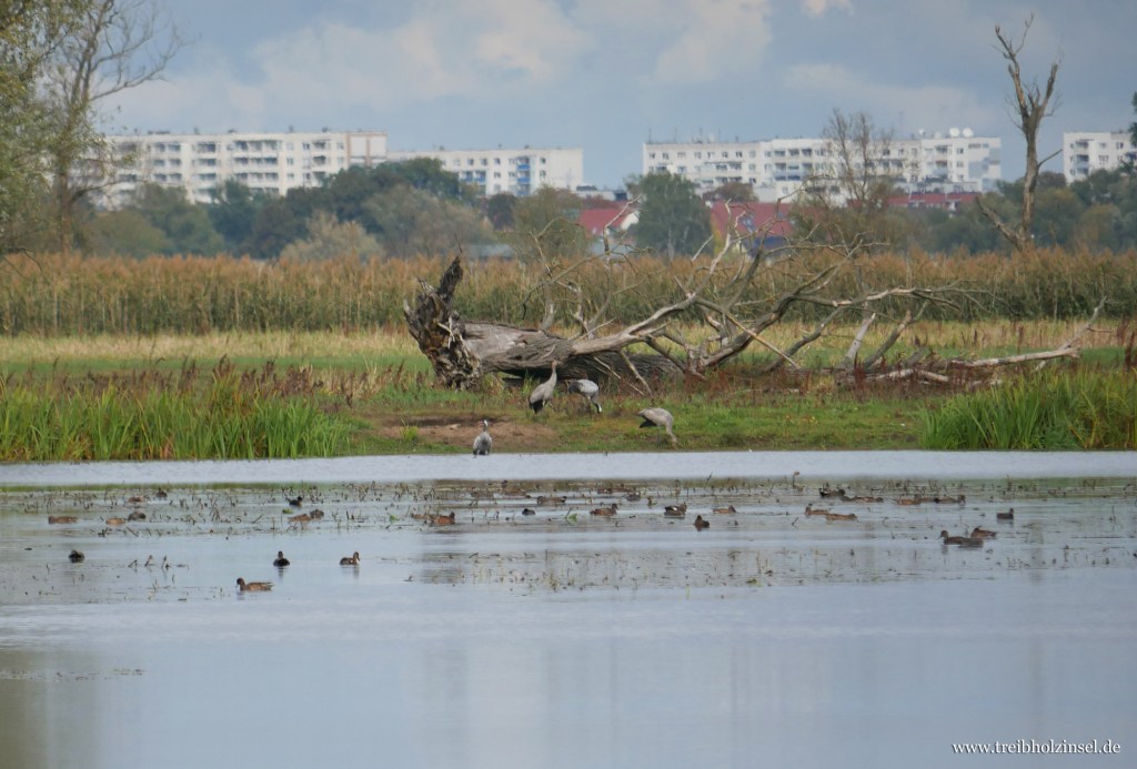 Oder es ist schlichtweg die Wehmut des Herbstes, des Abschieds von den Davonziehenden, des Zurückbleibens, über die auch der blaue Himmel nicht hinwegzutäuschen vermag, denn bald wird alles welk und trüb. Ab November wird der Nasspolder zwischen Schwedt und Stützkow geflutet und alles versinkt in einer eisblauen Stille, nagt frostig an den Ufern und verharrt für Wochen in winterlicher Fragilität. Man kann es bereits ahnen, beim Blick über das Tal.