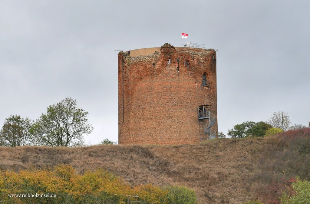 Der kleine Ort Stolpe bietet eine Besonderheit im Odertal. Oben auf dem Hang trutzt ein roter Ziegelturm wie ein steinernes Fass, dick und rund. Man nennt ihn bezeichnenderweise Grützpott und er ist der Rest einer Burganlage aus dem 12. Jahrhundert. Seine Mauern reichen tief in den Berg hinunter, wie bei einem Brunnen. Besichtigen lässt sich der Turm immer Mittwoch bis Sonntag. Mit der Besteigung bietet sich ein weiter Blick über das Tal und die hügelige Uckermark im Westen.