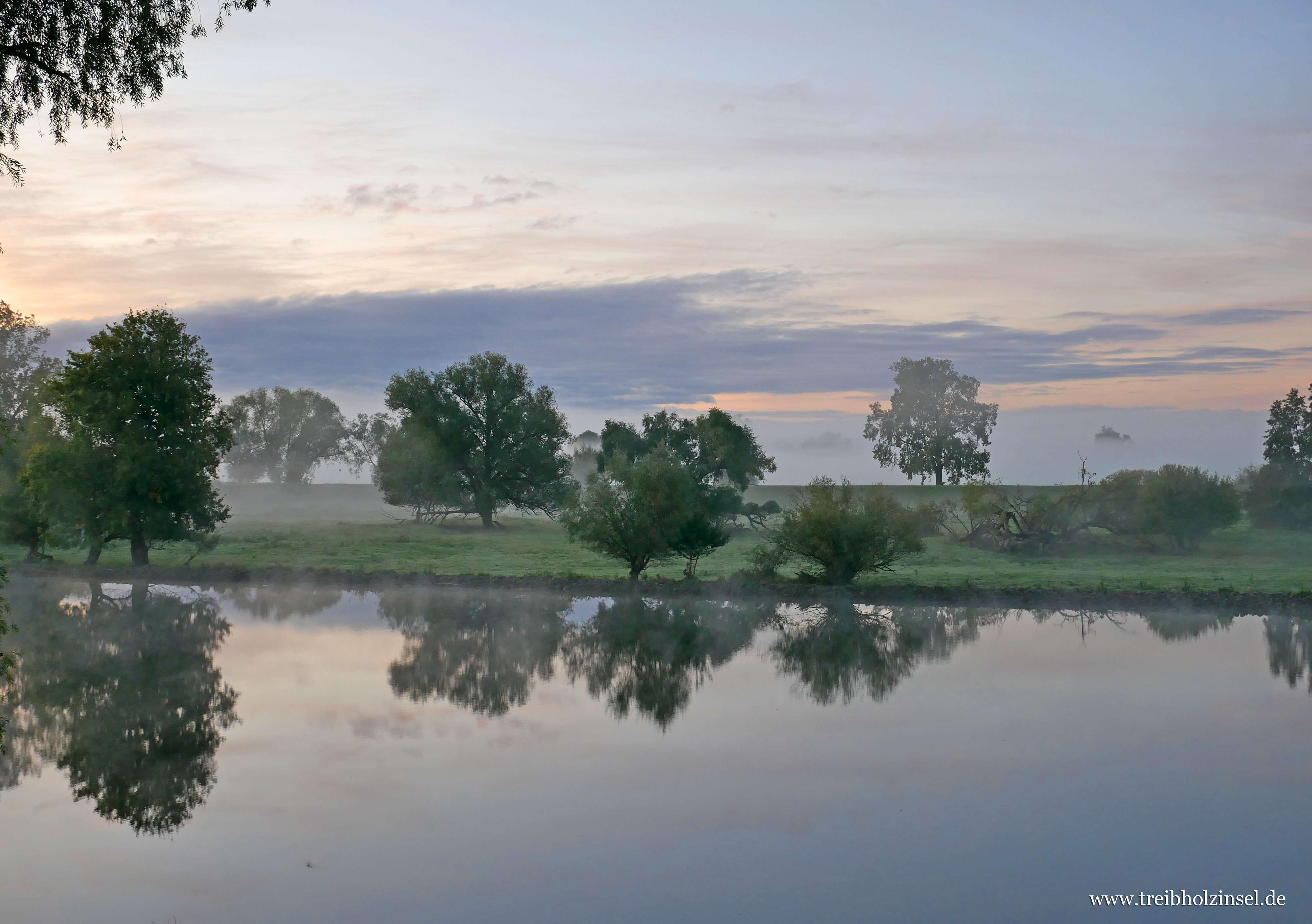 Die kleine Weide auf der anderen Seite des Kanals liegt verborgen in einer Hülle aus kaltem Dunst. In der Stille des Morgens sind nur vereinzelt Geräusche auszumachen: ein leichtes Platschen unten am Wasser, ein Rascheln im Brombeergesträuch, das ferne Muhen einer Kuh, deren blasser Schatten von Zeit zu Zeit im milchigen Licht auftaucht. Der Nebel hält sich hartnäckig über Stunden. Er bildet über der Weide eine weiße Wand, in der sich der Deich und dahinter die Polder und noch weiter in der Ferne die Talhänge am polnischen Oderufer verbergen.