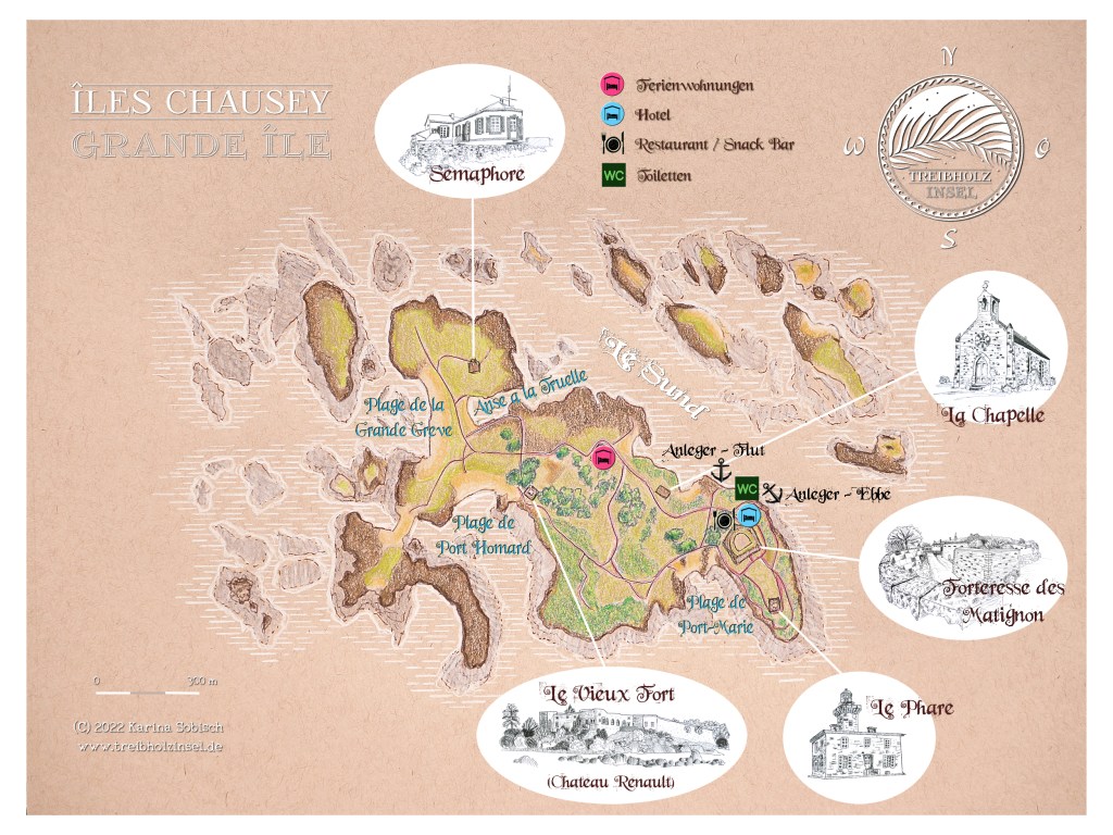 There you will also find tips on where to stop and where to stay on Grande Île. But the tide calendar is also important everywhere along the coast! I got reliable information about the weather here: https://tides4fishing.com/fr/basse-normandie/iles-chausey