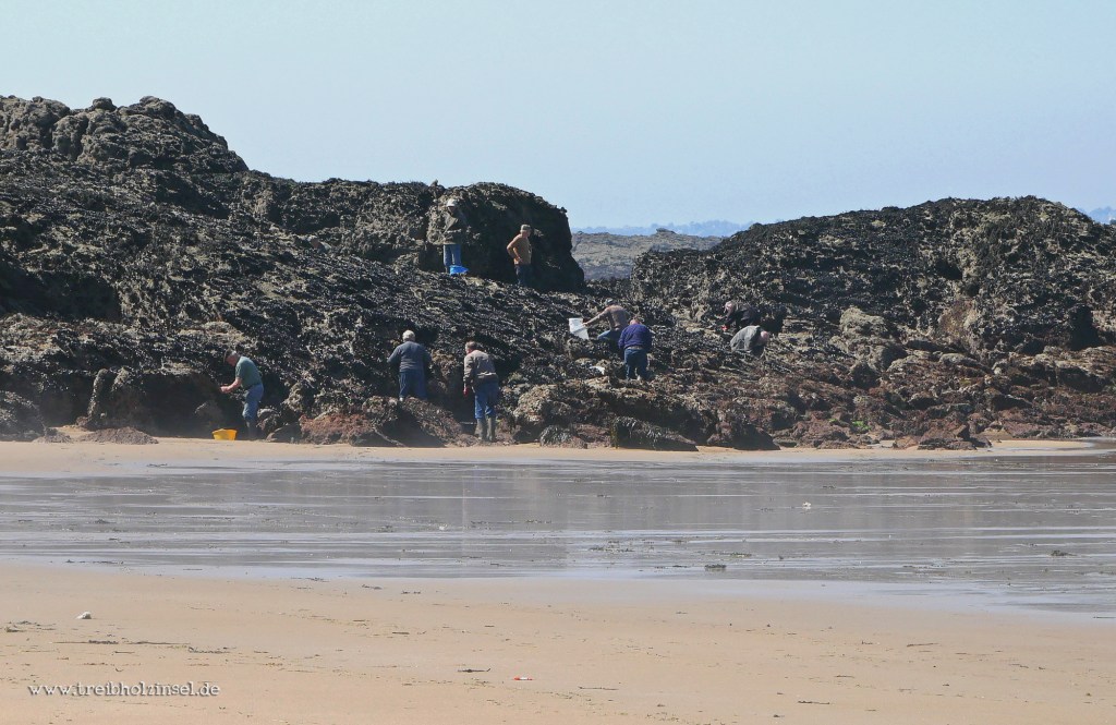 Allmählich ist es fast schon zu spüren, wie das Meer mit einem tiefen, langen Seufzen auszuatmen scheint. Das Wasser ist fort und eine stille Trägheit legt sich über den Archipel. Der Meeresboden liegt offen da, irgendwie nackt und schutzlos, übersät mit leeren Muschel- und Schneckengehäusen in allen Farben, Formen und Größen. Im Schlick verborgen aber schlummern die wahren Schätze und die Franzosen wissen sie zu nutzen: pêche à pied!