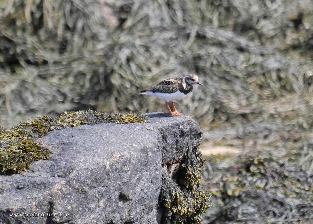 Plötzlich eine Bewegung auf den Felsen. Völlig unerwartet steht ein kleiner Steinwälzer nur ein paar Meter vor uns. Wo noch vor wenigen Stunden meterhoch das Wasser stand, findet auch er jetzt in den Geröllfeldern und schlaffen Tangwiesen jede Menge Nahrung. Es ist das erste Mal, dass ich einen Steinwälzer beobachten kann, ein Lifer, und auch wenn ich mich schon in diesem Moment am liebsten in Dankbarkeit vor dieser kleinen Vogelart verneigt hätte, hat sie am Ende das Tages eine noch aufregendere Überraschung für mich bereit.