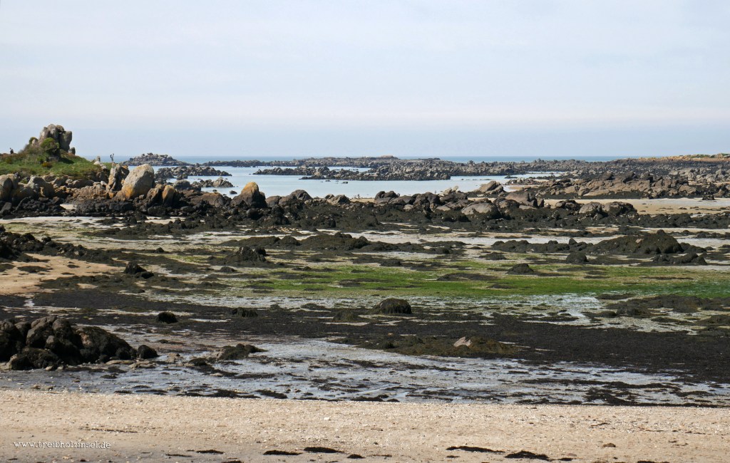 Vom Strand Grand Grève aus bietet sich ein Panorama über die Inseln und Felsen des Archipels. Während Grand Île hier auch ihren westlichsten Punkt erreicht, erstreckt sich die zumeist unterseeische Felsenwelt noch etwa 3,5 Kilometer nach Norden und Westen.